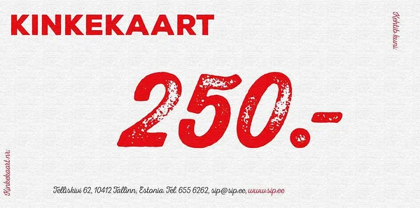 Ostutellimuse kinnitus või muu omal käel (ilma koodita) vormistatud rahaline kinkekaart ei ole SIP kaupluses automaatselt kehtiv.
